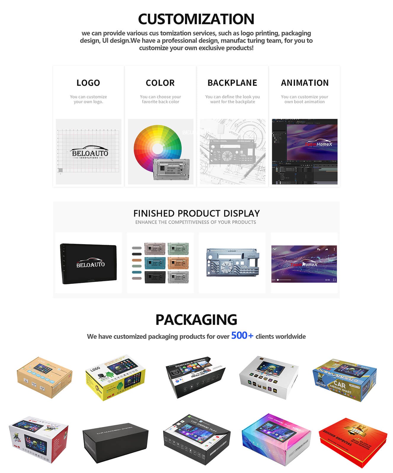Automotive display odm company (Beloauto) provides OEM/ODM services. For 10+ years, it has provided customized services for more than 1000 customers around the world. Customized services include: logo design, packaging design, appearance design, instruction manual design, etc. You only need to tell us your needs, and we will serve you for free.